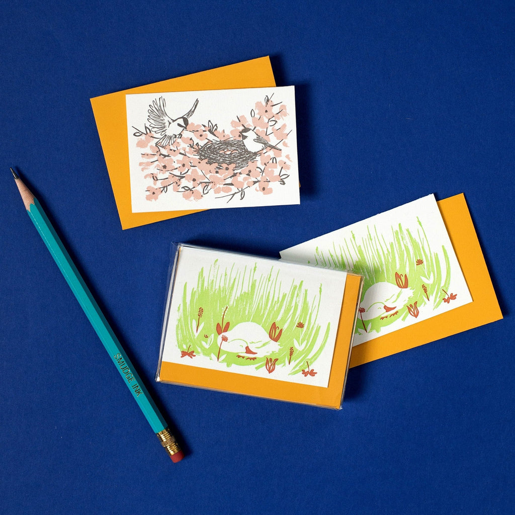 Letterpress enclosure cards created from original illustrations. Printed in Massachusetts & paired with a coordinating envelope.